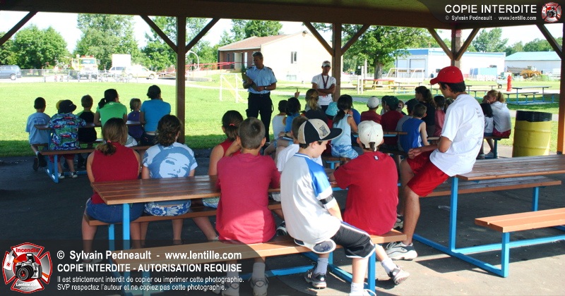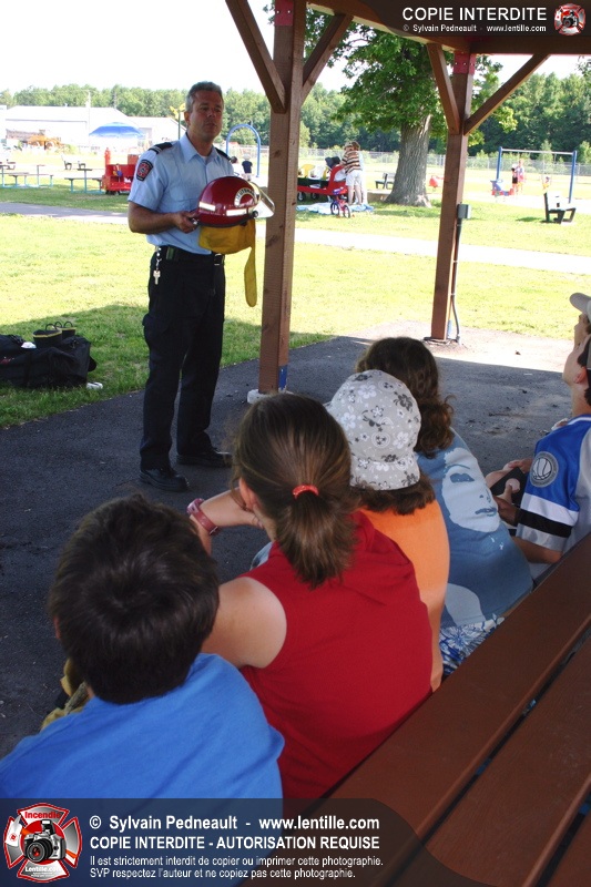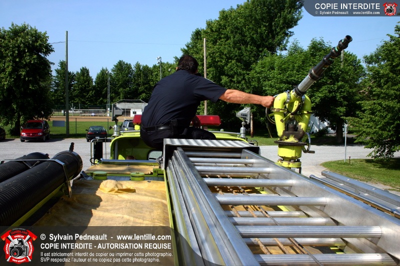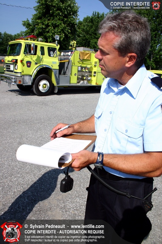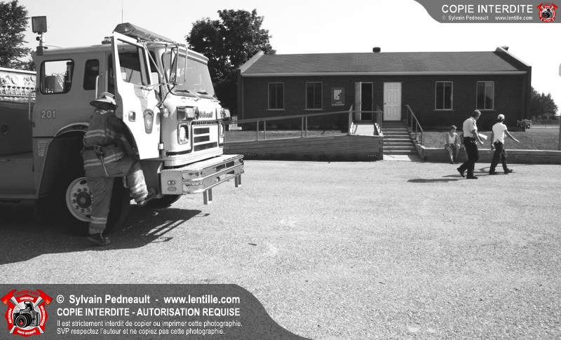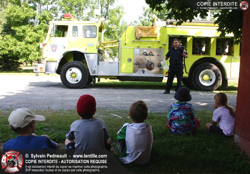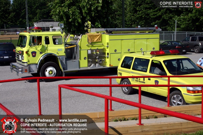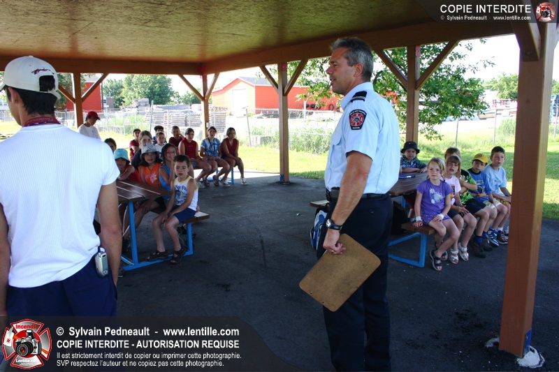 Le service de la prévention des incendies de Saint-Hyacinthe effectue un exercice d'évacuation dans un camp de jour d'été, impliquant une auto-pompe et un véhicule de service se présentant sur les lieux en code A.