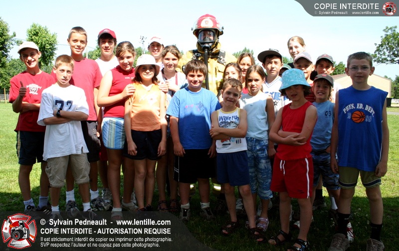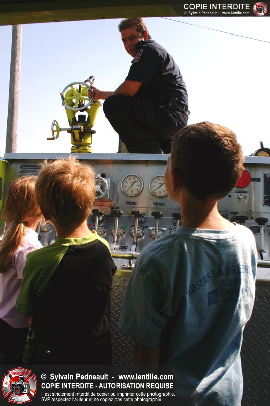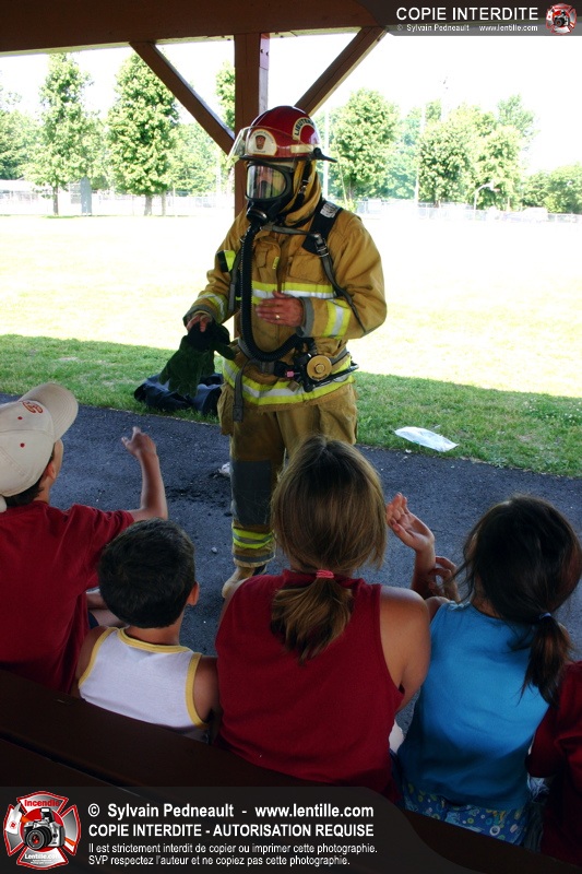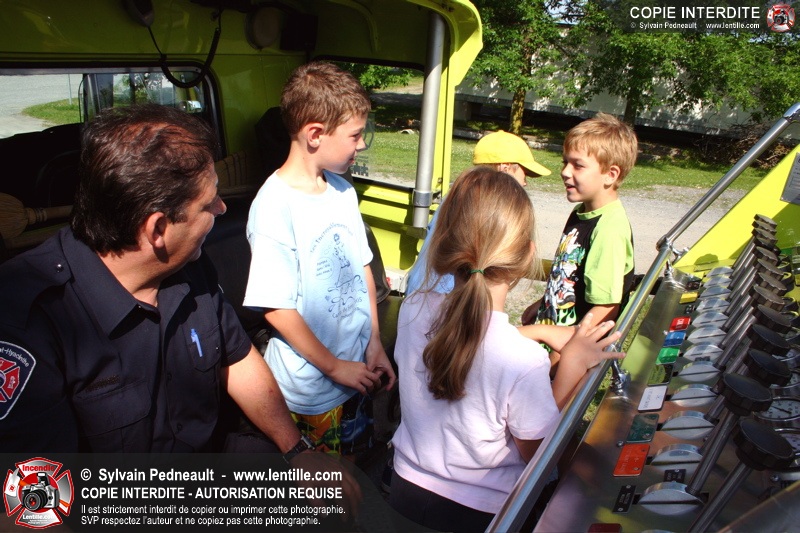 Par la suite, les enfants ont pu participer à deux ateliers: la visite de l'auto-pompe et la démonstration de l'uniforme de combat incendie.