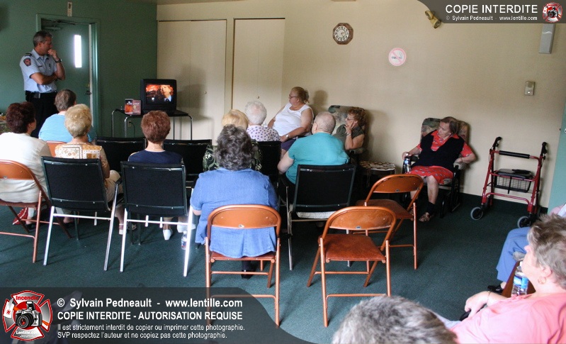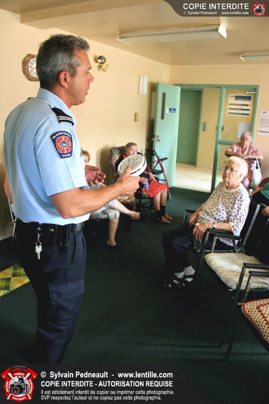 Le service de la prévention des incendies de Saint-Hyacinthe rencontre un groupe de personnes âgées.