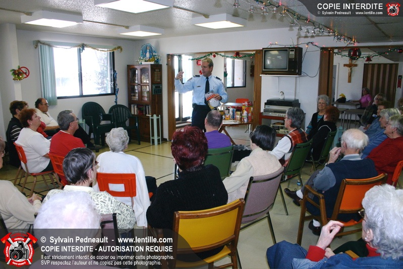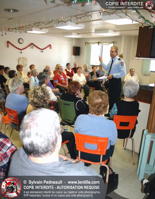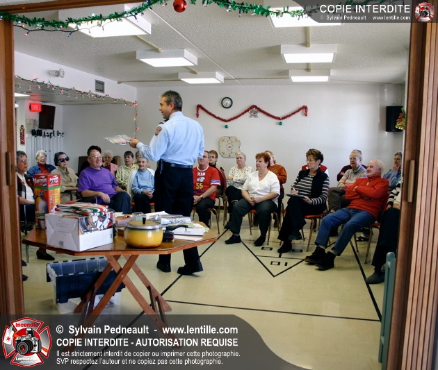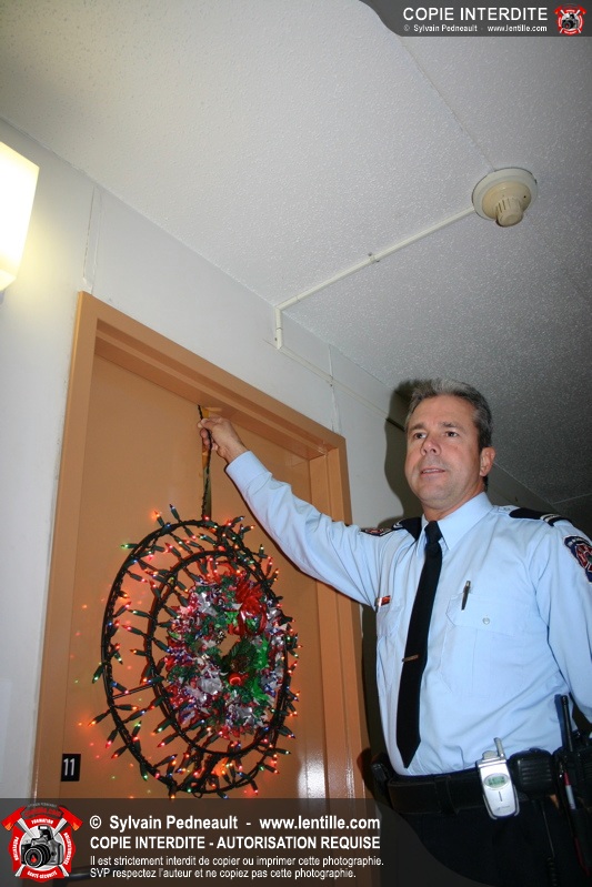 L'agent de prévention a également profité de l'occasion pour renseigner les gens sur les dangers d'installer des décorations de Noël lumineuses dans les portes de logements.