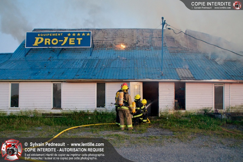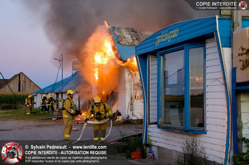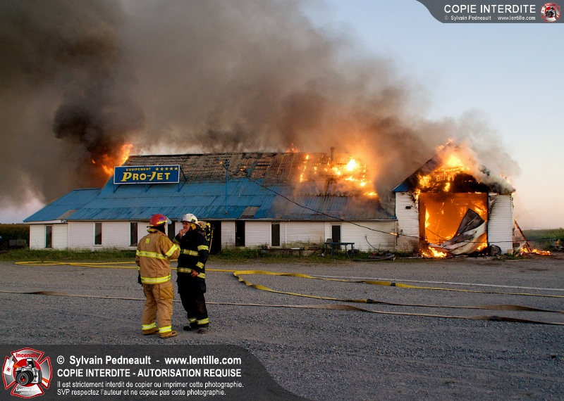 Un incendie a détruit un bâtiment commercial appartenant aux Équipements Pro-Jet sur la route 137 à Ste-Cécile-de-Milton. Les pompiers de Roxton Pond, St-Pie, St-Valérien et Granby sont rapidement intervenus pour tenter de sauver ce qui restait de la structure impliquée et pour protéger les bâtiments avoisinants.