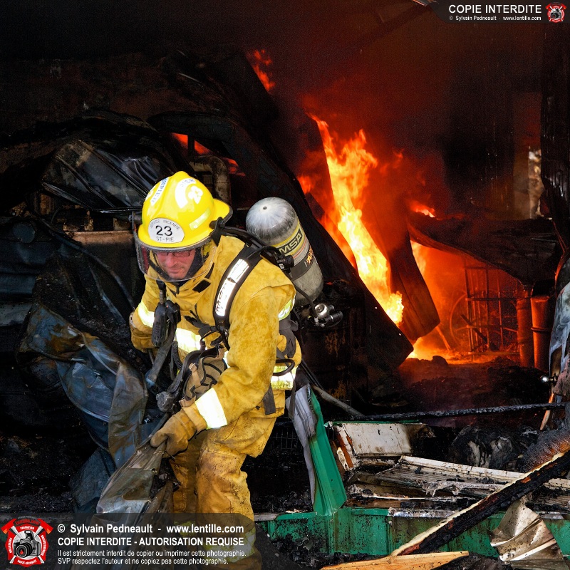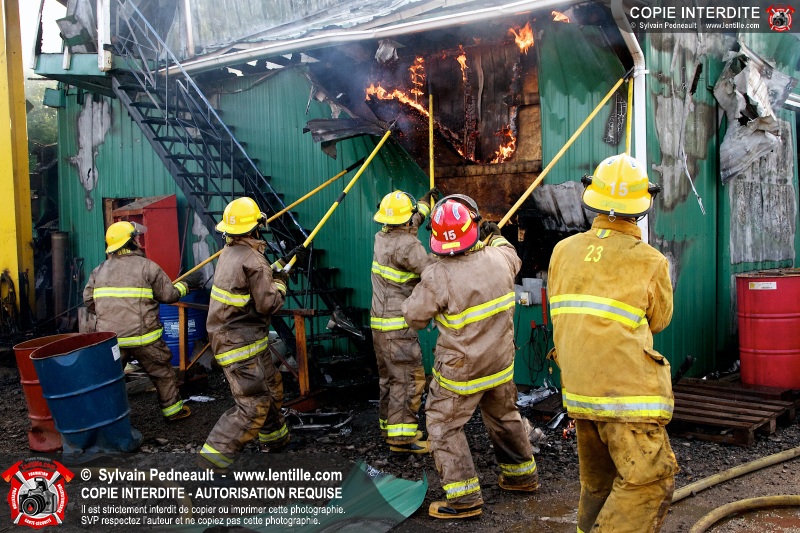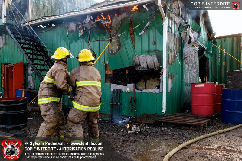 Le Service de sécurité incendie de Saint-Pie a été appelé en soirée pour un incendie dans un garage industriel. Les pompiers de Saint-Dominique et Saint-Hyacinthe ont été appelés en renfort avec des camions-citerne pour assurer un débit d'eau suffisant pour enrayer l'incendie.